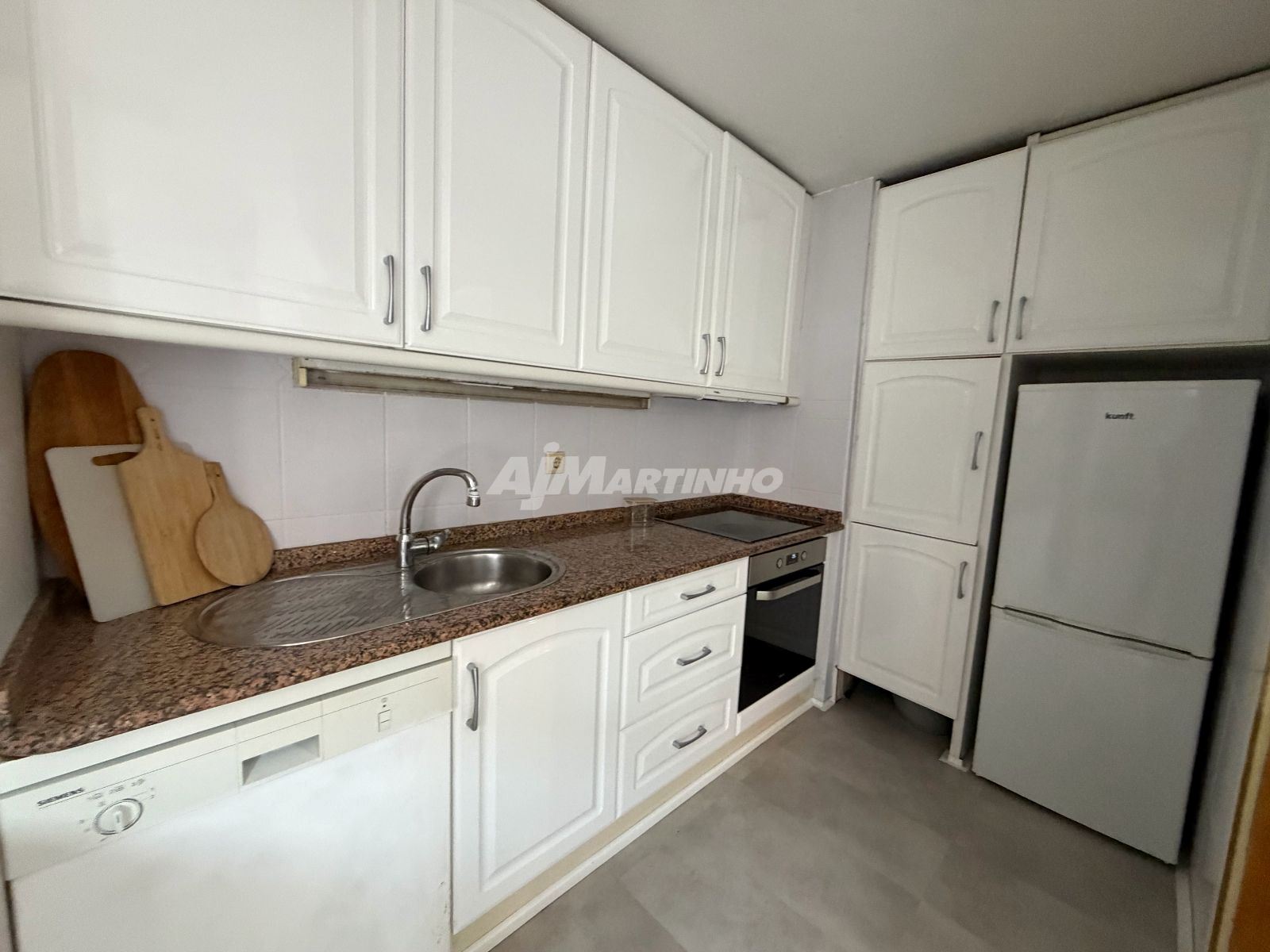 - Área bruta de 82 m², distribuída por 2 quartos com pavimento em soalho e roupeiros embutidos, uma espaçosa sala de 20 m² com excelente luminosidade, cozinha totalmente equipada com eletrodomésticos modernos (placa, forno, micro-ondas, frigorífico, máquina de lavar roupa e louça), e uma casa de banho com revestimento em cerâmica.